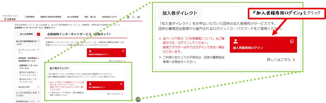 ② 企業保険インターネットサービス(企保ネット)『加入者様専用ログイン』へ